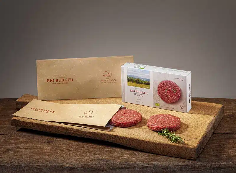 Pertanto, per i nostri bio burger e per la vendita al dettaglio presso il nostro spaccio aziendale di Cerbara di Città di Castello, non potevamo che scegliere incarti di alta qualità, sostenibili e riciclabili. I prodotti di Esseoquattro sono del tutto in linea con i nostri valori”.